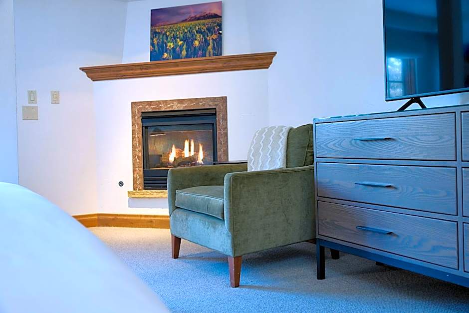 Featuring a gas fireplace, this room provides heated bathroom floors and down bedding. Bathrobes, an iPod docking station and a flat-screen cable TV are provided.